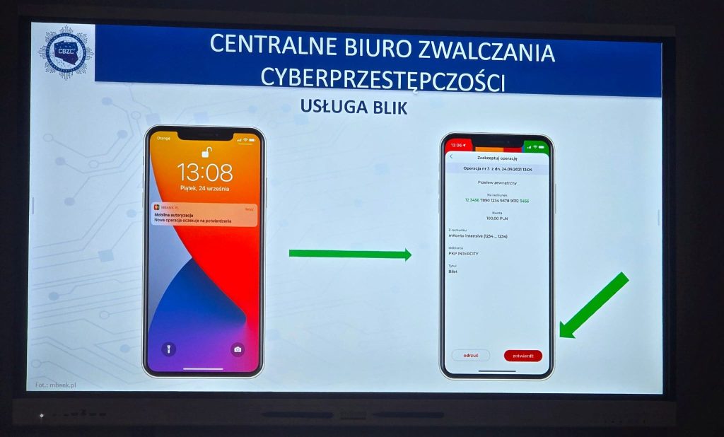 Prowadzący – profilaktyk asp. Szt. Szymon Porażyński reprezentujący Zarząd w Bydgoszczy Centralnego Biura Zwalczania Cybeprzestępczości – przybliżył na przykładach zarówno zagrożenia jak i sposoby ich unikania. Zaprezentował zabezpieczenia oraz czynności zapobiegawcze, które skutecznie utrudniają kradzież danych i pieniędzy, a także narzędzia do weryfikacji bezpieczeństwa tychże.